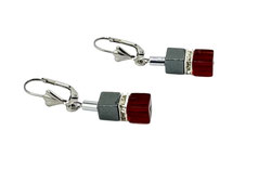 Ohrringe Edelstahl mit Hämatit und weinroten Glasw